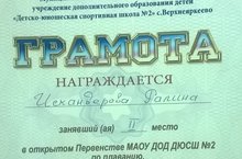 Ученица 2а класса нашей гимназии Искандерова Ралина заняла второе место на открытых соревнованиях по плаванию, проходивших в с.Верхнеяркеево, Республика Башкортостан. Хотим также отметить, что Ралина уже попала в Книгу рекордов гимназии как единственная младшеклассница, имеющая разряд по плаванию.