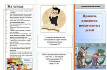 Ученики 4а класса под руководством классного руководителя Муртазиной Л.Г. выпустили буклет под названием "Правила поведения воспитанных детей".