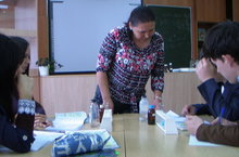 Учитель химии Семенова В.Г. провела открытый урок в 9а классе. Ученики, разделившись на группы по 4 человека решали задачи, смешивая различные химические ингриденты под чутким руководством учителя.