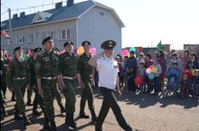 Праздник Победы в райцентре начался парадом юнармейцев. Юнармейцев нашей гимназии подготовил учитель ОБЖ Башаров И.И.
