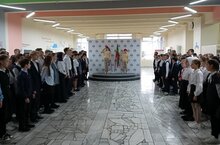 Каждый понедельник в Муслюмовской гимназии начинается с торжественного поднятия флагов и исполнения гимнов Российской Федерации и Республики Татарстан