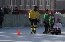 На время зимних каникул в гимназии организована работа хоккейного корта.