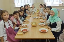 Технология дәресендә 7 нче сыйныф кызлары яшелчәләрдән "Борщ" ашы пешерергә өйрәнделәр.