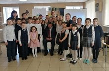 Мөслим гимназиясенең 6А сыйныф укучыларына "Беренче очыш" дип исемләнгән сыйныф сәгате үткәрде. Китапханәче Ю.А.Гагаринның тормышында булган кызыклы мизгелләре турында сөйләде. -