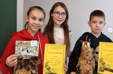 Көзге рәсемнәр һәм поделкалар конкурсында җиңүгә лаек булган 6б сыйныфы укучылары Хазиев Алмаз һәм Андреева Ралинага грамоталар тапшырылды.