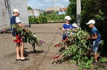 Укучылар, мәктәп яны тәҗрибә участогында чүп утыйлар, чәчәкләргә су сибәләр, карлыган, кура җиләген җыюда ярдәм итәләр. Укучылар бик тырышып кушылган эшләрен үтиләр.