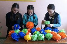 Мәктәп үзидарә членнары венокка чәчәкләр ясадылар. Валеев Ф.Ө. укучыларга венокны ясап бирде, ә үзидарә укучылары венокны чәчәкләр белән бизәделәр.