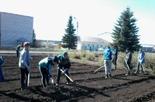 12 нче май көнне мәктәпкүләмендә бакчада суган, кишер, чөгендер утырттык. Шулай ук әтиләр советы әгъзасы Гибадуллин Гаяз абый үз тракторы белән бәрәңге җирен эшкәртеп, утыртып бирде. Мәктәп коллективы исеменнән Гаяз абыйга рәхмәтебезне белдерәбез.