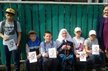 Бәйрәм уңаеннан укучылар тыл ветераннарын бәйрәм белән котладылар. Тамьян авылында яшәүче Мөкаттәрә әбигә бардылар.