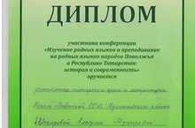 2 нче ноябрь көнне татар теле һәм әдәбияты укытучысы Шакирова Әлфия Мөнир кызы укытучыларның Казан шәһәре Ш.Мәрҗәни исемендәге 2 нче татар гимназиясендә уздырылган “Изучение родных языков и преподавание на родных языках народов Поволжья в Республике Татарстан:история и современность”фәнни-гамәли конференциясендә катнашып чыгыш ясады.