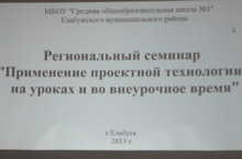 4 ноября в городе Елабуга состоялся региональный семинар на тему "Применение проектной технологии на уроках и внеурочное время".Там принимали участие учителя нашей школы Амирова М.,Шакирова А.,Корбиев А.,Хазиева Р.