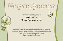 Экология айлыгы кысаларында 8 класс укучылары "Международный конкурс «Экология России»" да катнашып сертификат алдылар