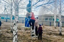 Экология һәм хезмәт тәрбиясе айлыгы кысаларында Тугаш мәдәният йорты белән берлектә мәктәбебезнең 1,5,6 нчы сыйныф укучылары әтиләре белән бергә ясаган сыерчык ояларын урнаштырдылар