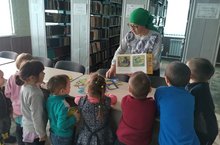 Мәктәпкәчә яшьтәге балалар торкеме авылыбыз китапханәсендэ. Әкият китаплары белән танышуны дэвам иту.
