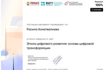 Учителя школы прошли курс «Эпоха цифрового развития: основы цифровой трансформации» и получили сертификаты. Это просветительская программа о технологических трендах, векторах развития цифровой экономики, изменениях на рынках труда, а также о компетенциях, необходимых для успешной реализации цифровой трансформации.