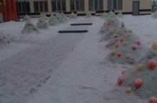 К Новому году в школьном дворе "выросли" снежные ёлки.