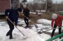 Юнармейцы нашей школы вышли на субботник по уборке территории обелиска села. 15.04.2017