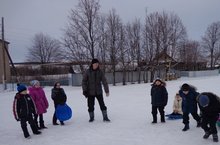 Учитель физической культуры Митюшкин А.Г. организовал для учащихся игры на свежем воздухе. Мероприятие окончилось катанием на горке и чаепитием. 06.01.2016