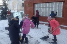 Учащиеся начальных классов ходили на шефскую работу. Они очистили от снега обелиск села. 29.01.2015