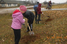 В школе прошла акция "Посади дерево". Школьники посадили 23 саженца. 17.10.2014