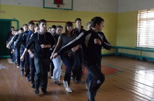 Учащиеся школы проводят подготовку маршировки для участия 9 мая в районном параде Победы. 25.04.2014