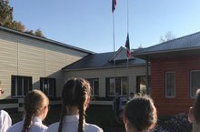 В рамках патриотического воспитания еженедельное поднятие флагов и исполнение гимнов РФ и РТ по Стандарту церемонии поднятия (спуска) Минпросвещения России. 11.09.2023