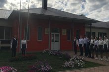 Учебная неделя началась с поднятия Государственных флагов и исполнения гимнов РТ и РФ 04.09.2023