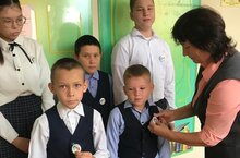 По инициативе Главы Муслюмовского муниципального района обучающимся 1 класса и детям из малообеспеченных семей вручили светоотражающие значки 06.09.2023