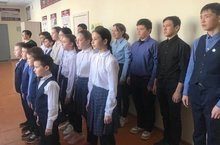 В рамках патриотического воспитания поднятие флагов и исполнение гимнов РФ и РТ по Стандарту церемонии поднятия (спуска) Минпросвещения России. 27.02.2023