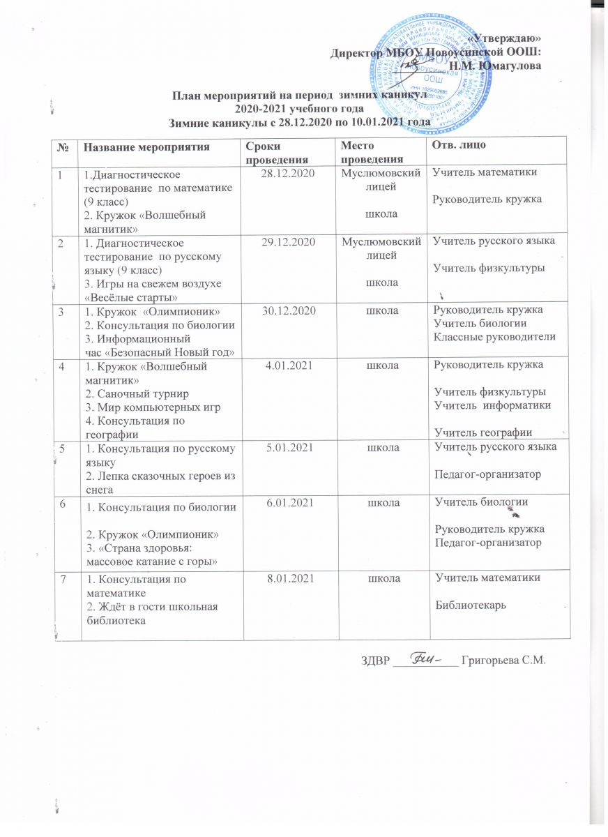 - План мероприятий на зимние каникулы 17.12.2020