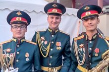 На этих фотографиях выпускники отделения духовых инструментов Муслюмовской детской школы искусств, успешно окончившие Альметьевский музыкальный колледж Салихов Раушан и Шакиров Алмаз (преподаватель Рунар Шаяхметов). Они служат в оркестре военных духовых инструментов в поселке Рощенский Самарской области.