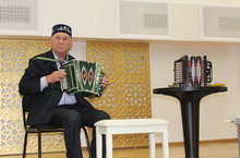 Встреча с Музагитом Ахметзяновым/ Мөҗәһит Әхмәтҗанов белән очрашу 28.09.2021 Вчера, 27 сентября, в Муслюмовской школе искусств состоялось торжественное мероприятие. В рамках отмечаемого в республике Года единства родных языков и народов школьники встретились с детским писателем, поэтом, членом Союза писателей Татарстана, заслуженным учителем Татарстана, заслуженным работником культуры Татарстана, лауреатом премий имени А. Алиша , Сажиды Сулеймановой, Ш. Галеева, почетным гражданином Муслюмовского района Музагитом Ахметзяновым. Будучи мастером на все руки, гость продемонстрировал детям игру на различных инструментах, рассказал о своих творческих работах. Ребята в свою очередь подарили Музагиту Загитовичу свои музыкальные номера. Кичә, 27 сентябрь көнне Мөслим сәнгать мәктәбендә үзенчәлекле чара узды. Республикада билгеләп үтелүче Туган телләр һәм халыклар бердәмлеге елы кысаларында мәктәп укучылары балалар язучысы, шагыйрь, Татарстан Язучылар берлеге әгъзасы, Татарстанның атказанган укытучысы, Татарстанның атказанган сәнгать эшлеклесе, А. Алиш , Сажидэ Сөләйманова, Ш. Галиев исемендәге премияләр лауреаты, Мөслим районының Мактаулы гражданины Мөҗәһит Әхмәтҗанов белән очрашты. Күпкырлы һөнәрләр иясе буларак, кунагыбыз балаларга төрле уен коралларында уйнап күрсәтте, үзенең иҗат эшләре турында сөйләде. Балалар үз чиратында Мөҗәһит Заһит улына үзенең музыкаль номерларын бүләк итте.