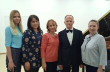 Преподаватели Муслюмовской детской школы искусств периодически посещают курсы профессиональной переподготовки, повышают квалификацию. Так вчера в городе Альметьевске прошли педагогические чтения преподавателей отделений фортепиано детских музыкальных школ и школ искусств. На чтениях приняли участие и наши преподаватели Алеся Латыпова, Розалия Хабибуллина, Филюза Шарипова, Гульназ Хафизова. Были прослушаны выступления преподавателей из других районов Юго-Востока РТ. Самым значительным выступлением был мастер-класс профессора, пианиста Льва Франка. Будучи заслуженным артистом РФ и Республики Башкортостан он дал и сольный концерт. Отделение фортепиано Муслюмовской детской школы искусств выражает огромную благодарность благотворительному фонду «Татнефть» и коллективы Альметьевского музыкального колледжа за предоставленную возможность. Мөслим сәнгать мәктәбе укытучылары һәрдаим белем күтәрү курсларын уза. Кичә, Әлмәт шәһәрендә шундый укуларның чираттагысы булып узды . Әлмәт музыка көллияте һәм “Татнефть” хәйрия фонды ярдәме белән биредә пианист укытучыларның педагогик укулары узды. Анда Татарстанның Көньяк-Көнчыгыш районарында урнашкан музыка һәм сәнгать мәктәпләренең фортепиано бүлеге белгечләре җыелган иде. Үзара тәҗрибә уртаклашудан кала, укуларда профессор, танылган пианист, Россия һәм Башкортстанның атказанган артисты Лев Франк та чыгыш ясады. Шулай ук укуларда катнашкан укытучыларыбыз Алеся Латыпова, Филюзә Шәрипова, Гөлназ Хафизова, Розалия Хәбибуллина Лев Александровичның концертын да тамаша кылды.