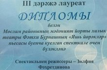 Как известно зрителям Муслюмовского районного дома культуры, всеми любимый народный театр нашего района принимал участие в межрегиональном конкурсе «Идел-йорт» и удостоился звания лауреата 3 степени.