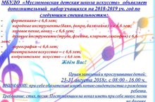 Муслюмовская ДШИ объявляет дополнительный набор учащихся 28.08.2018