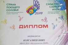 Каждый год учащиеся Муслюмовской детской школы искусств принимают участие в региональном фестивале детского творчества «Страна поющего соловья». 29.01.2018 В этом году фестиваль стартовал в 21 раз. Учащиеся вокального отделения и нынче показали свое мастерство. Ученик класса Муршиды Ахметзяновой - Нияз Нургалиев получил звание дипломанта в номинации «Вокал. Сольное исполнение эстрадной песни» среди участников в возрасте от 10 до 12 лет.