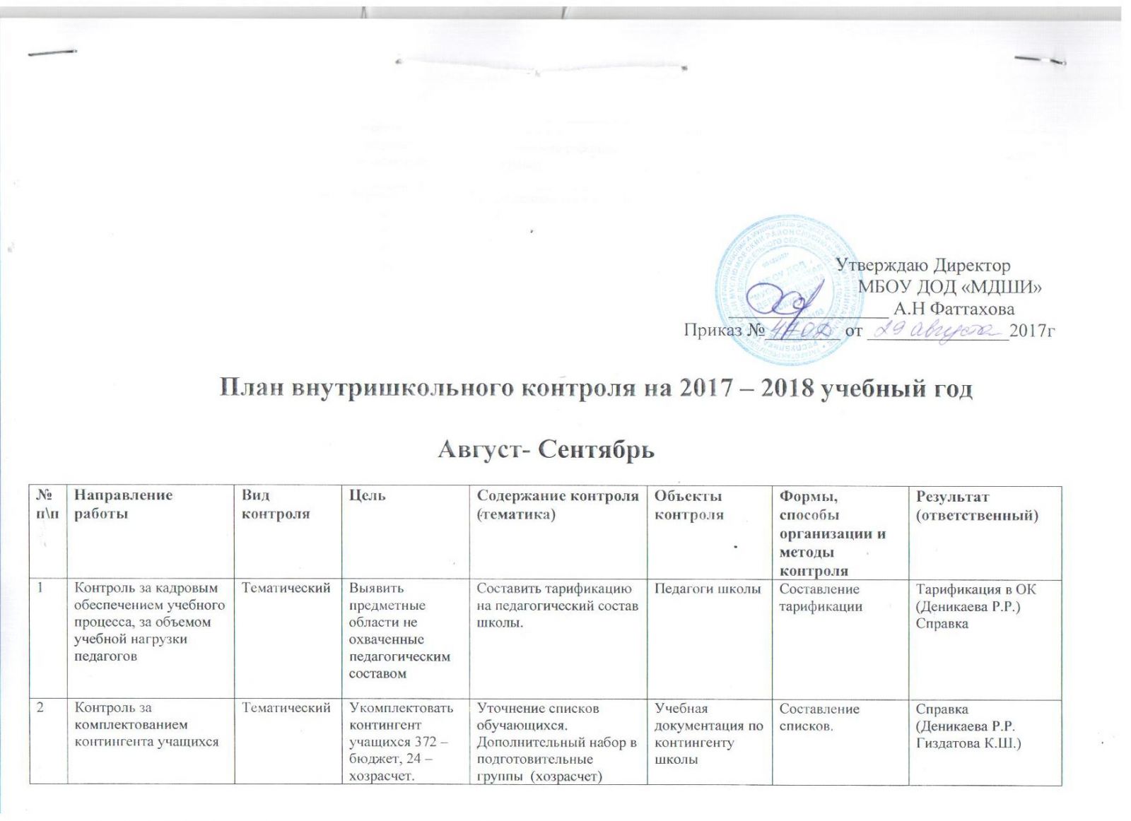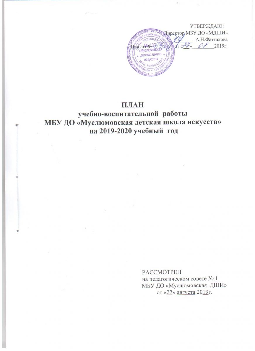 План учебно-воспитательной работы МБУ ДО "МДШИ" на 2024-2025 учебный год