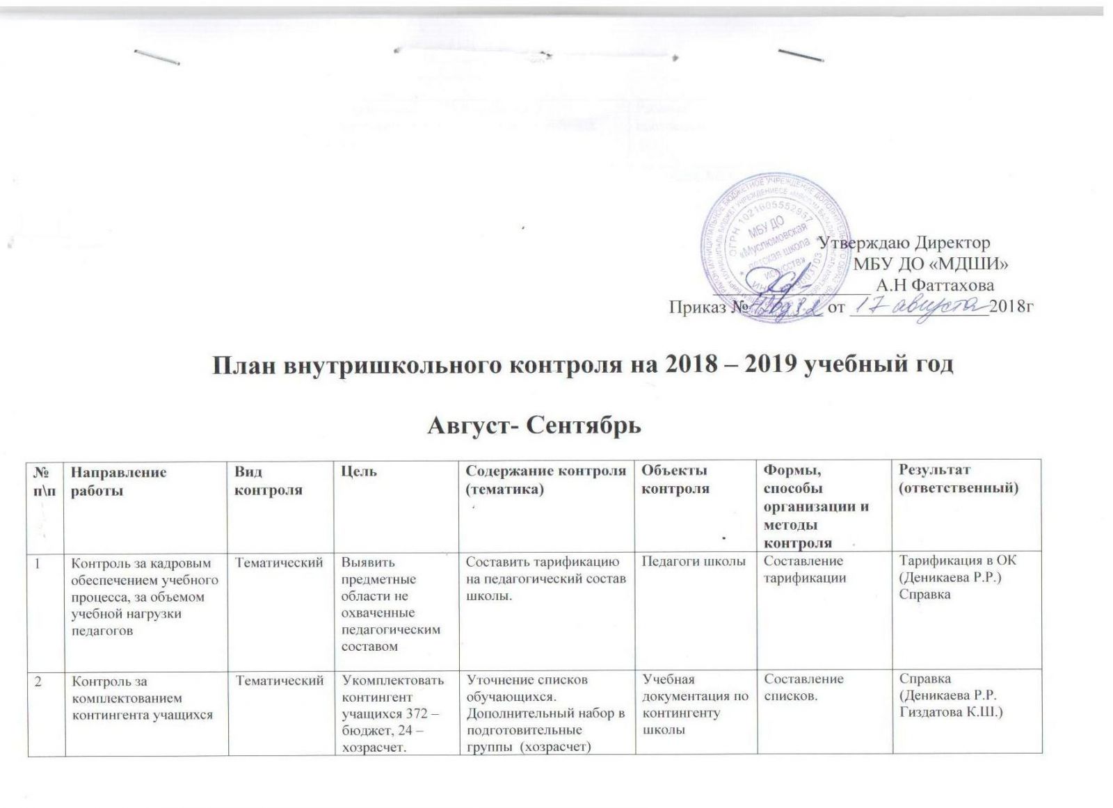 План учебно-воспитательной работы за 2018-2019 учебный год