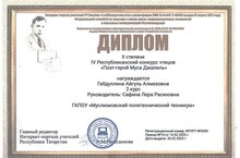 Обучающаяся 2 курса по специальности 43.02.15 Поварское и кондитерское дело Габдуллина Айгуль приняла участие и была награждена дипломом II степени в VI Республиканском конкурсе чтецов "Поэт-герой Муса Джалиль".