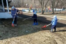 Воспитанники дошкольной группы тоже помогают наводить чистоту на территории. Вместе с воспитателями на днях они вышли на экологический субботник