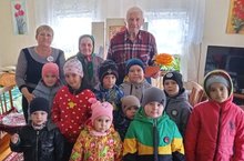В рамкках Года родных языков и народного единства воспитанники дошкольной группы накануне Дня Победы, вместе со своими воспитателями Новиковой М.В. и Родионовой В.П. побывали в гостях у ветеранов тыла, детей войны семьи Костиных. Они поздравили их с наступающим праздником, вручили подарки, изготовленные своими руками.