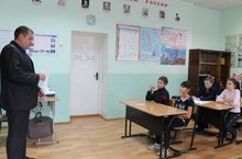 Вчера состоялась, ставшая традиционной, встреча учащихся с сотрудником полиции перед уходом на каникулы. Сотрудник МВД Тахауов И. рассказал учащимся о правилах правильного поведения на улице, на дороге, напомнил о требованиях 71-го Закона, запрещающего нахождение несовершеннолетних на улице после 22 часов без сопровождения взрослых.