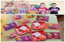 Мәктәпкәчә яшьтәге төркемгә йөрүче балалар якынлашып килүче 8 Март бәйрәменә әниләренә бүләк әзерләделәр.
