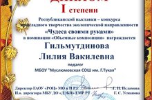Туган телләр һәм халыклар бердәмлеге елы уңаеннан мәгариф һәм фән Министырлыгы приказы нигезендә һәм талантлы балаларны, педагогларны барлау максатыннан Республика олимпиада үзәге "Үз кулларың белән могҗиза" исемле иҗади конкурс оештырды. Әлеге конкурста Гилметдинова Л.В. үз эшен тәкъдим итеп 1нче урын яулады. Котлыйбыз!