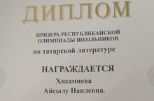 Поздравляем призера республиканской олимпиады по татарской литературе Хисамиеву Айсылу.Учитель Даутова Г.М.