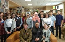 2 нче февраль көнне,8б сыйныф укучылары район үзәк китапханәсендә Әфган сугышы ветераннары белән очрашуда катнашты.Коточкыч афәтне үз күзләре белән күргән,аның эчендә кайнаган,интернациональ бурычларын намус белән үтәгән якташ ветераннарыбыз укучыларны шул елларның истәлекле вакыйгалары белән таныштырдылар.