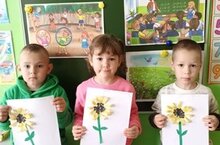 Балалар белән кисеп ябыштыру эшчәнлегендә көнбагыш чәчәген ясадык.