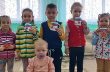 Балалар кисеп-ябыштыру шөгылендә, Ватанны саклаучылар көне уңаеннан,әтиләргә бүләк ясадылар.