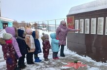 Патриотик тәрбия бирү ул- бала күңелендә Туган илнең табигатенә,туган авылына,халкының тарихына мәхәббәт уяту.Балалар Ватаныбызнын батыр бабайларыбызга ясалган һәйкәл янында.