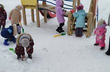 Балалар матур ,җылы көндә саф һавада рәхәтләнеп кар белән уйнадылар.
